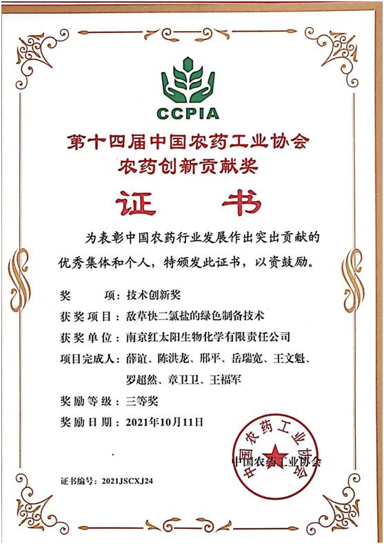 中國(guó)農(nóng)藥協(xié)會(huì)技術(shù)創(chuàng)新獎(jiǎng)三等獎(jiǎng)
